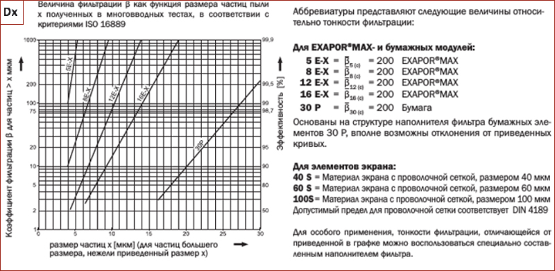Кривые тонкости фильтрации см. в таблице выбора, столбец 4