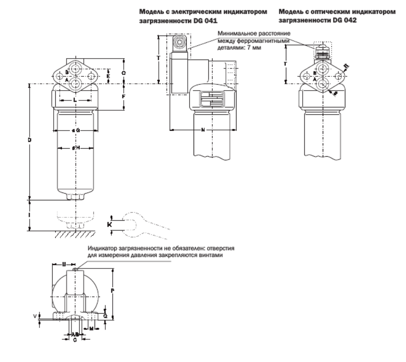 Электрические /или оптические индикаторы фильтра доступны по выбору с одним или двумя элементами коммуникации относительно подавления температуры.