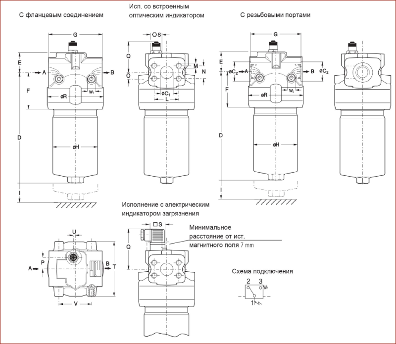 Резьбовые порты согласно ISO 228 или DIN 13. Для выбора см. таблицу подбора, столб. 6 (другие типы резьбы по запросу).