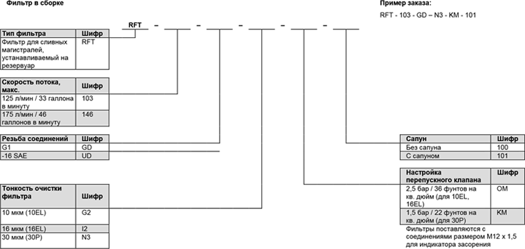 Сливные фильтры RFT 103, RFT 143