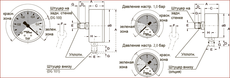 - DG 100: -1,0 ... +0,25 бар